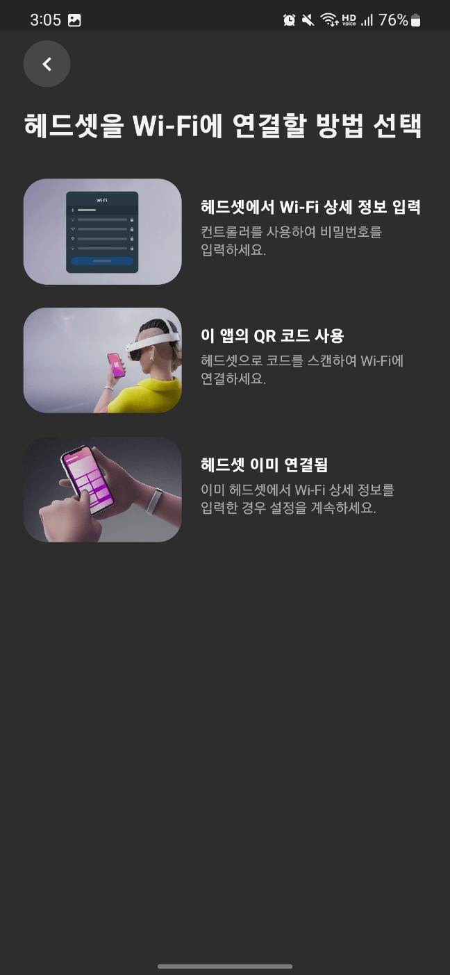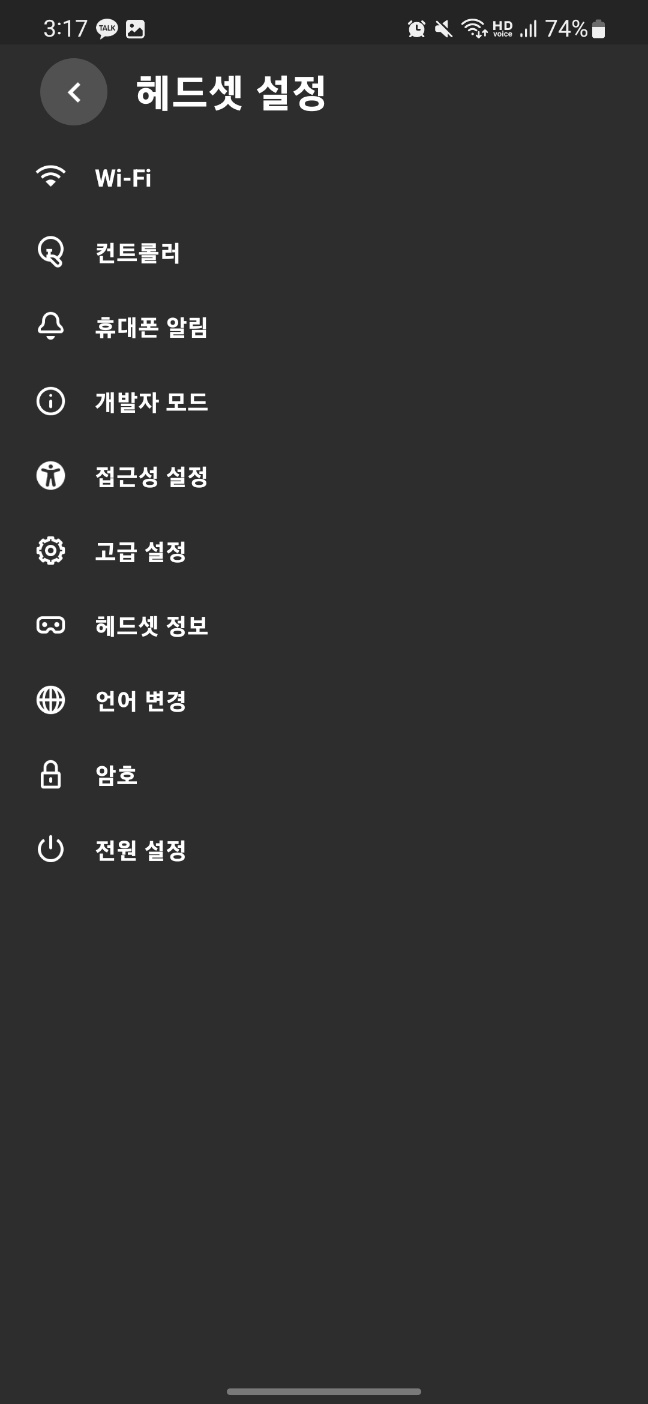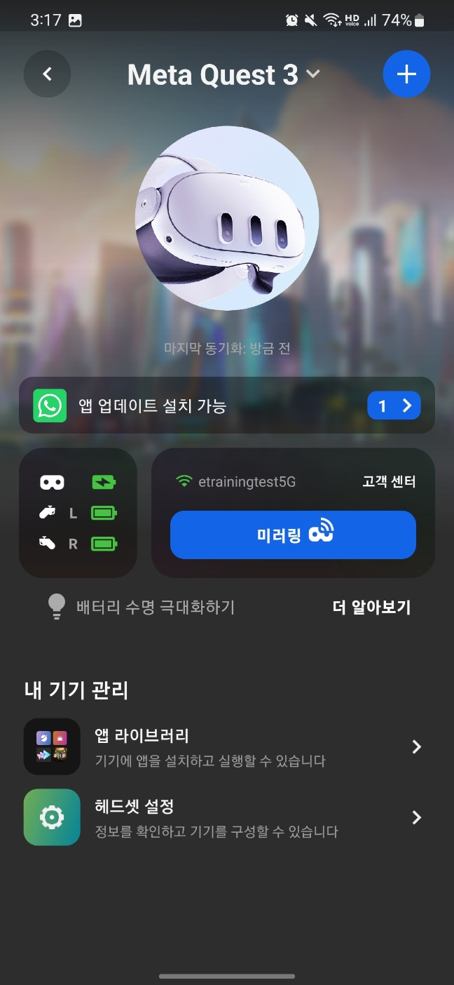 오큘러스 앱에서는 현재 같은 와이파이에 연결된 오큘러스의 상태를 설정하거나