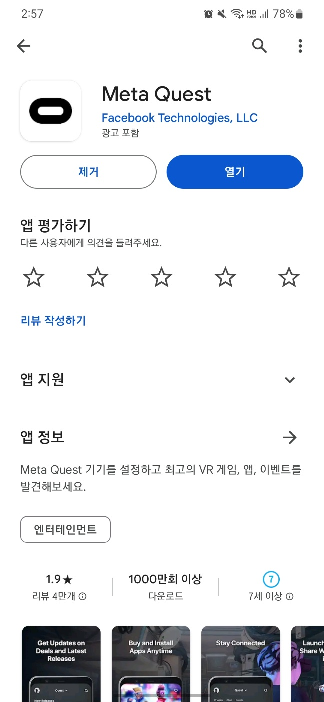 먼저 메타 퀘스트 모바일 앱도 설치해 줍시다.