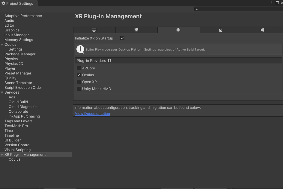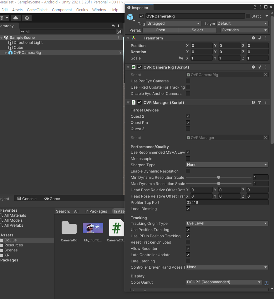 xr 플러그인 매 너지 먼트 설치 후 oculus 설정!