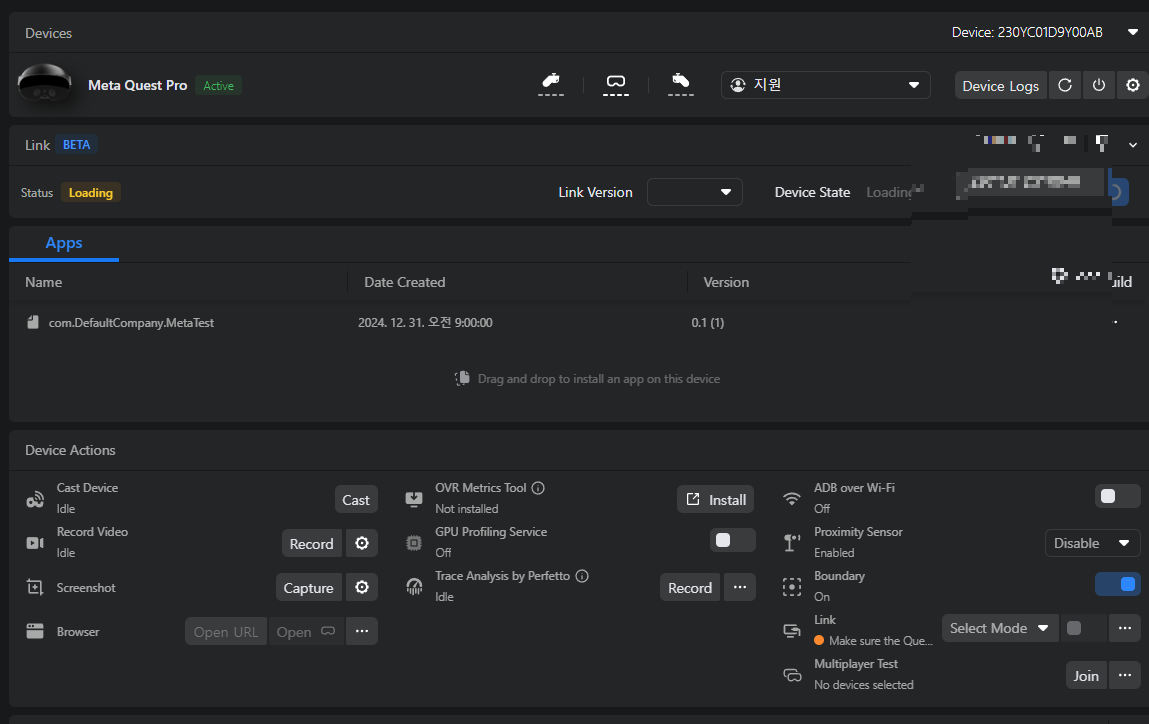 빌드하는 과정은 위와 동일하며, 아래 메타퀘스트 개발자 허브를 통해