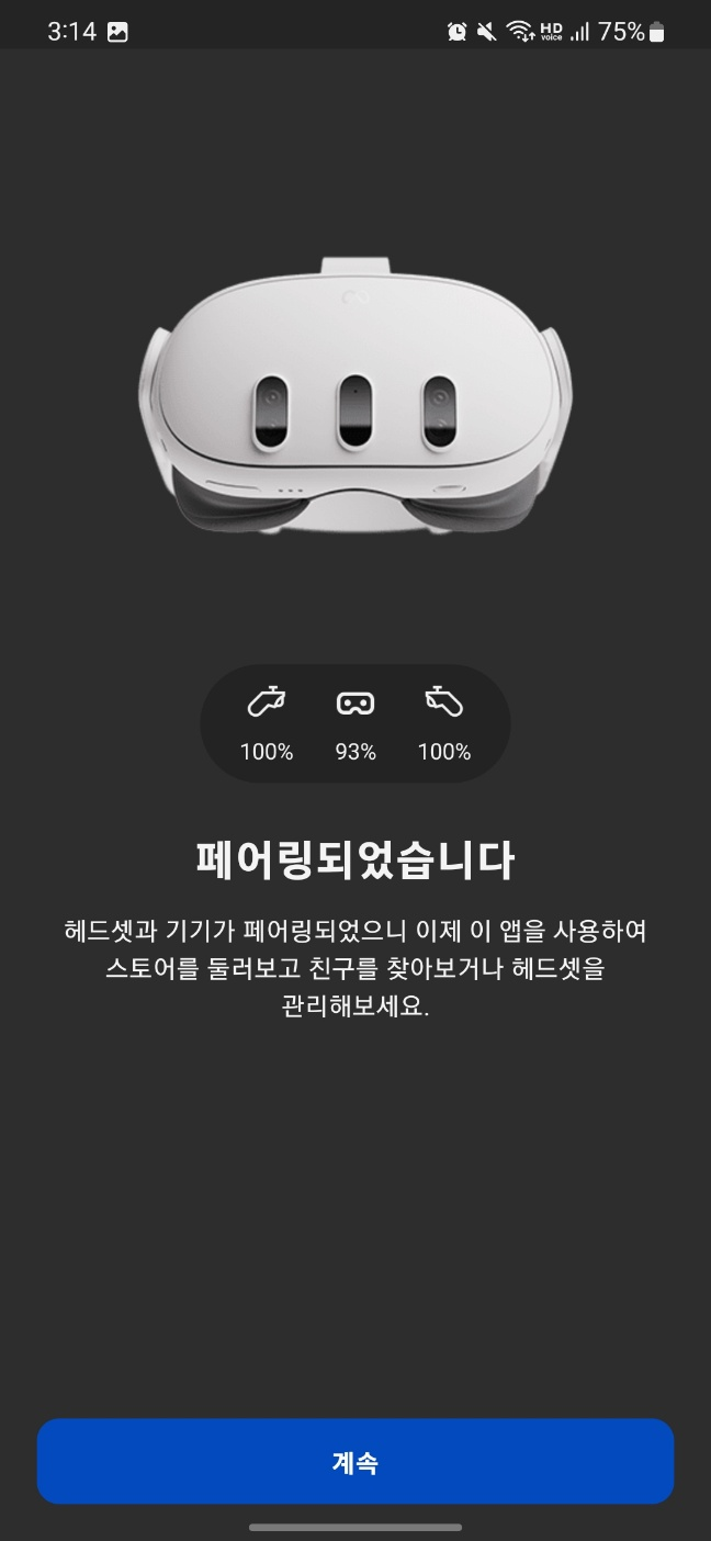 그럼 이제 모바일에서 아바타 설정, 페이 설정 등을 끝내고, 메타퀘스트와 페어링 해줍시다.