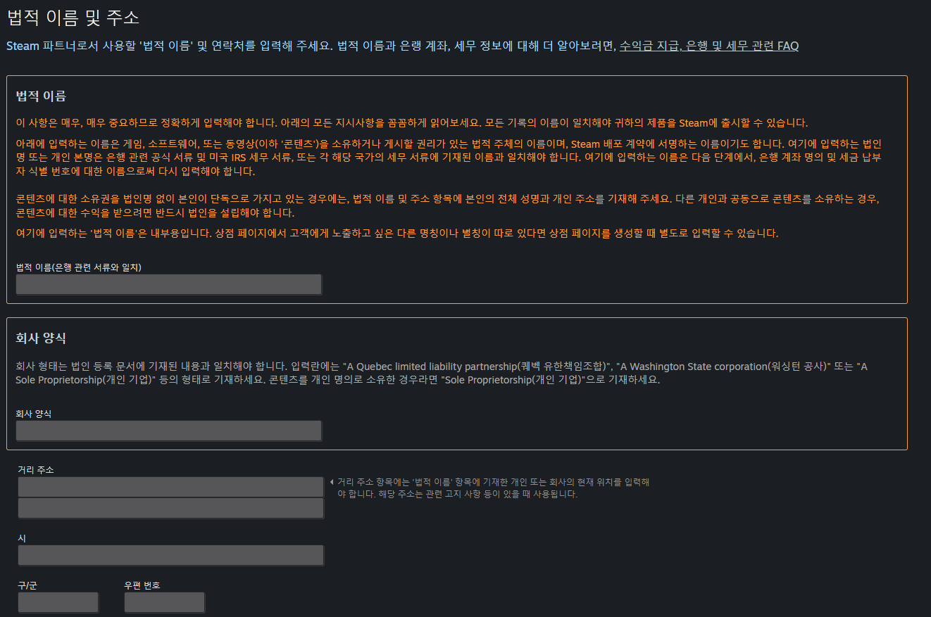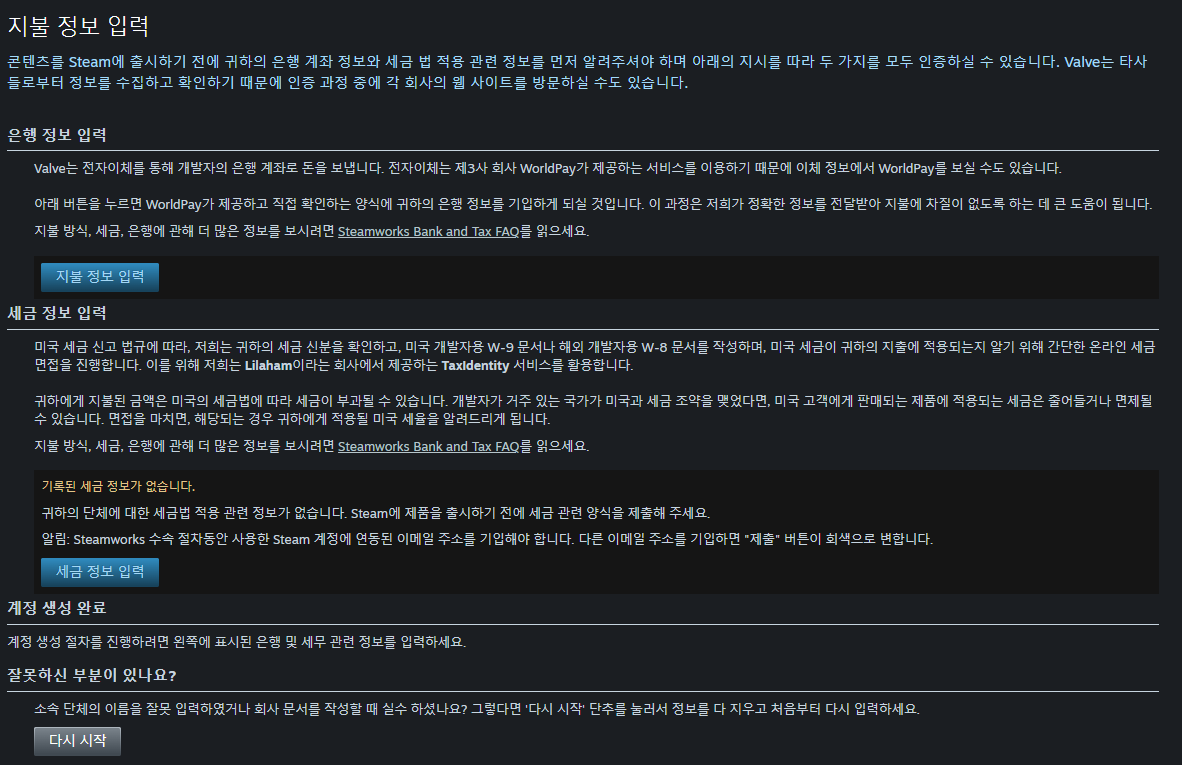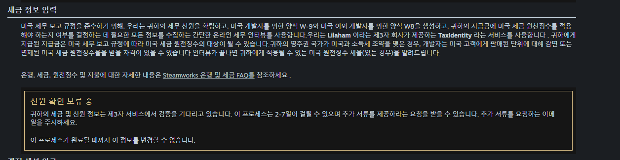 오히려 STEAM WORKS 가입/ 세무정보 등등이 더 어려워 보이더라구요....