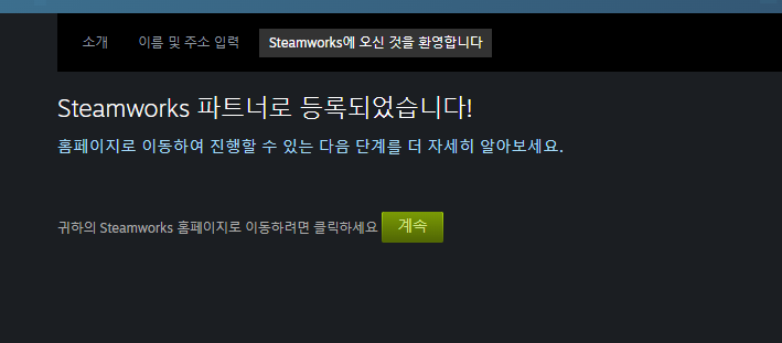 이제 2~7일 안에 스팀웍스 파트너로 등록이 됩니다!