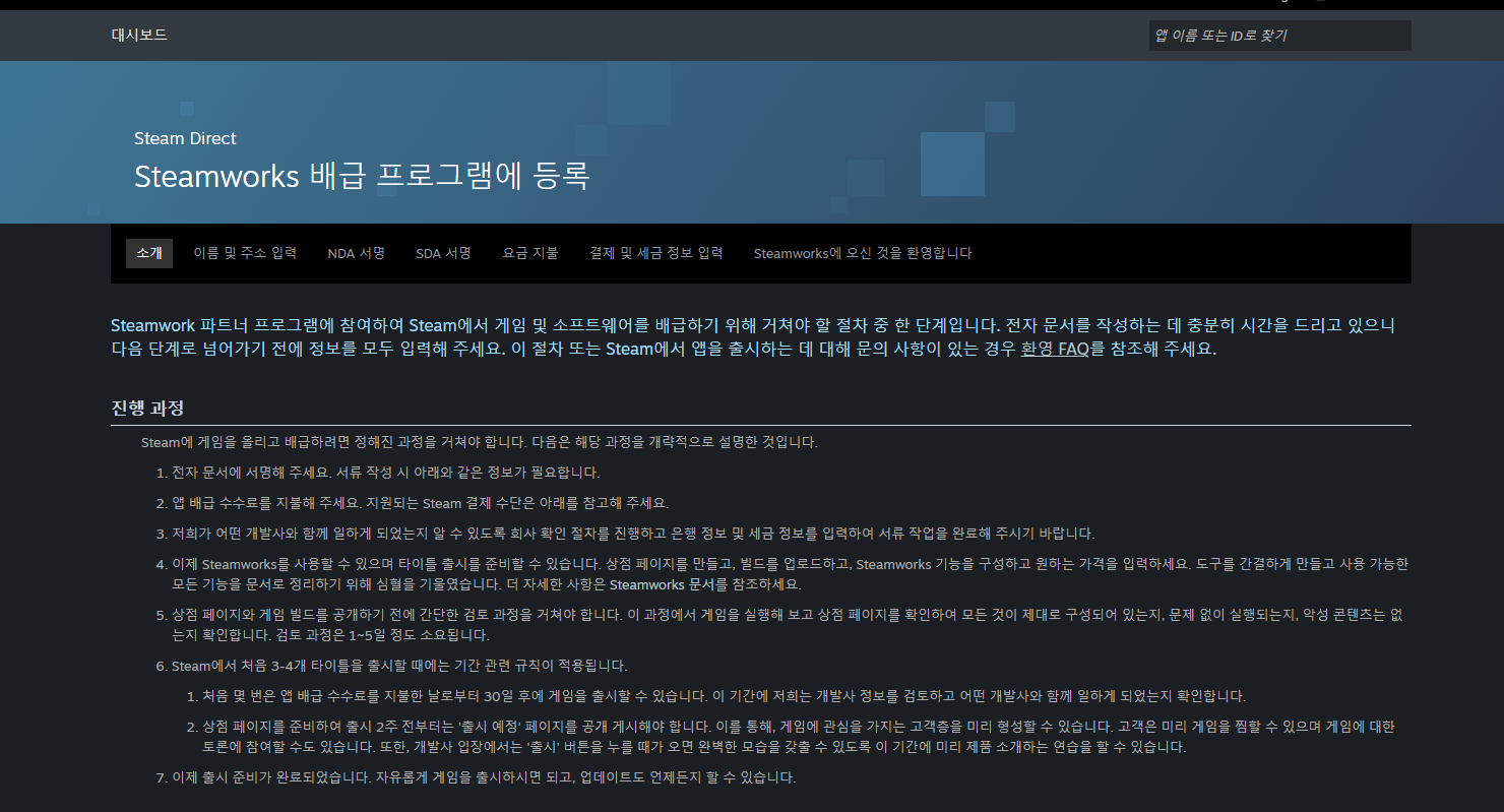 스팀에 게임을 등록/ 출시하기 위해서 필요한 부분들과 과정에 대해서 먼저 정리를 하고 지나가도록 하겠습니다.