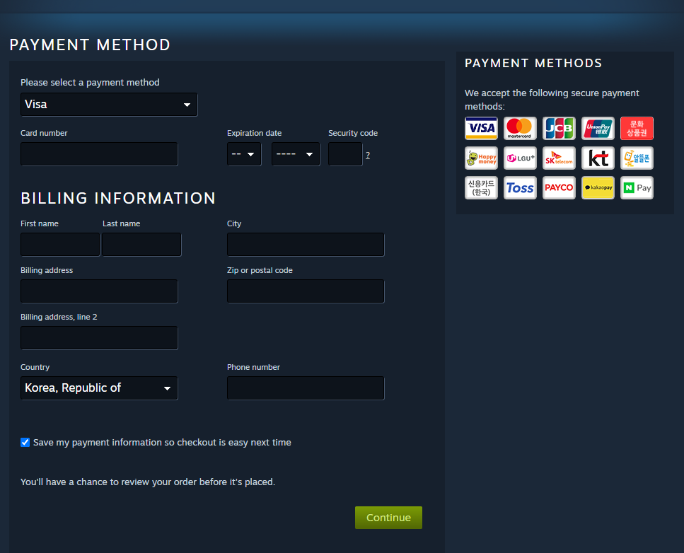 이미 스팀에서 결제를 해본 분들이라면 익숙하실거 같은데,