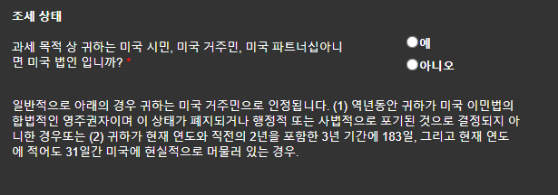 미국인인지, 사업을 한적이 있거나 하고있는지 묻는 부분