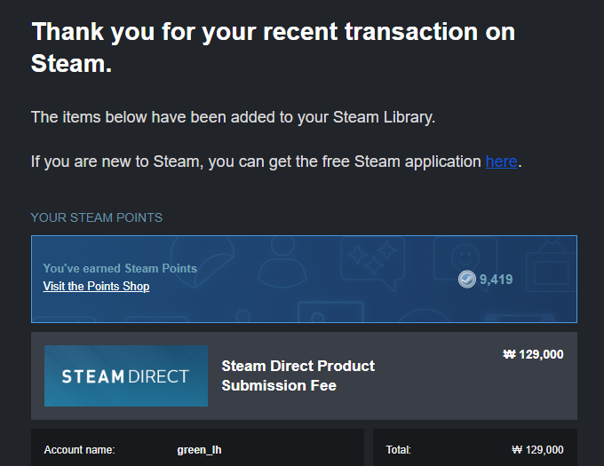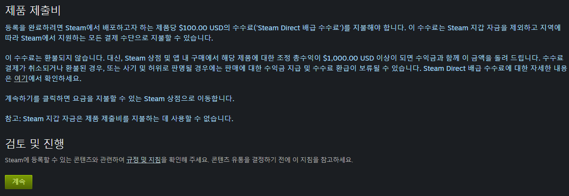 네.... 스팀에 프로그램을 출시하기 위해 사용되는... "등록비"
