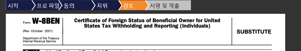 다하고 나면 W-8BEN 문서가 나오게됩니다