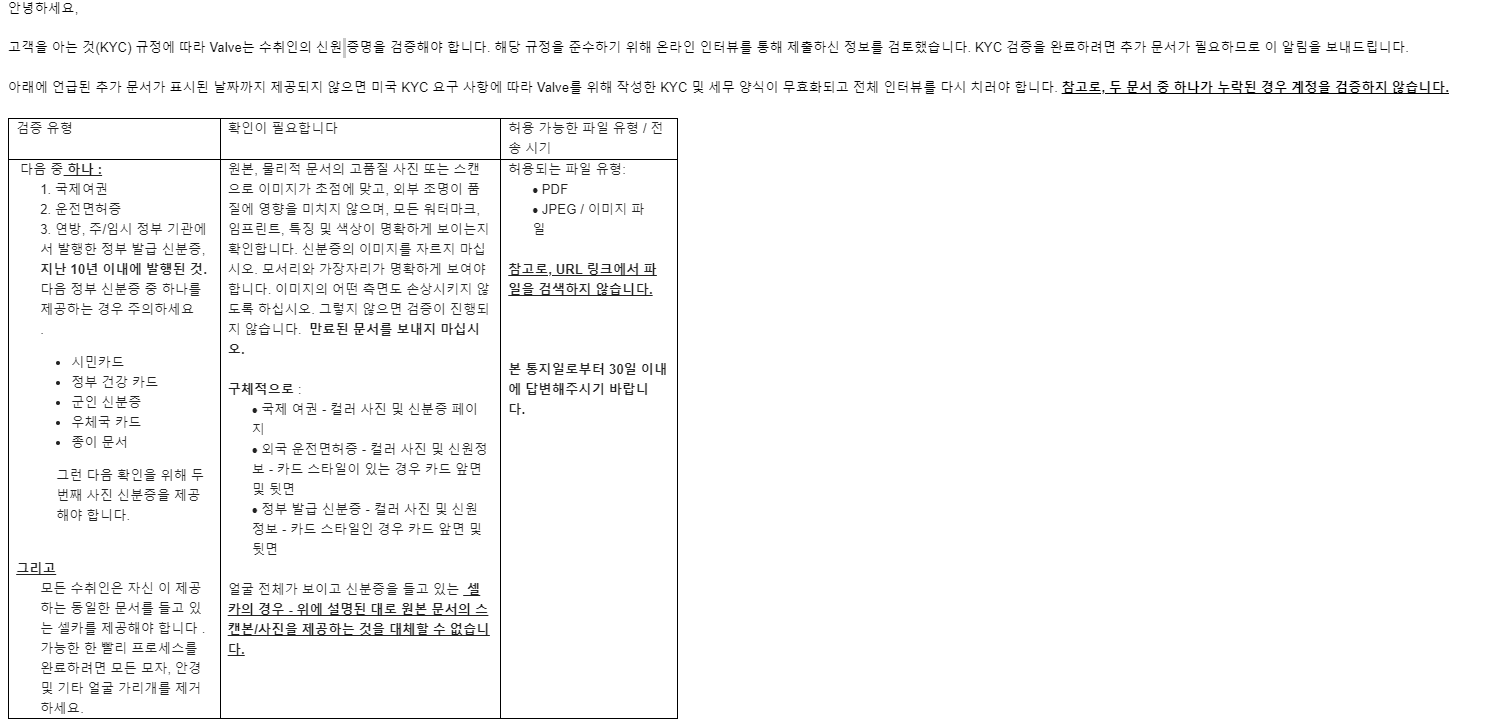 +++ ... .제출과 동시에 valve에서 메일이 옵니다.