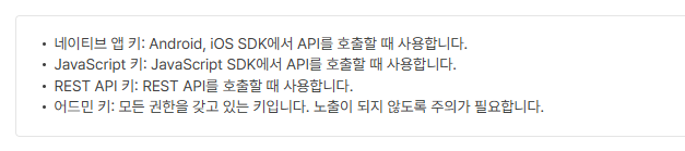 먼저 카카오 개발자 사이트에서 키를 받아야 합니다.