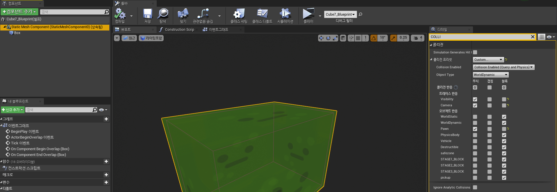 1. 위의 그림처럼 커스텀으로 폰과의 콜리전 관계를 겹침으로 바꾸어 준다.