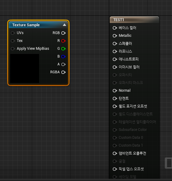 TEXTURE SAMPLE을 이어 주면 원래 택스처가 띄워질꺼에요