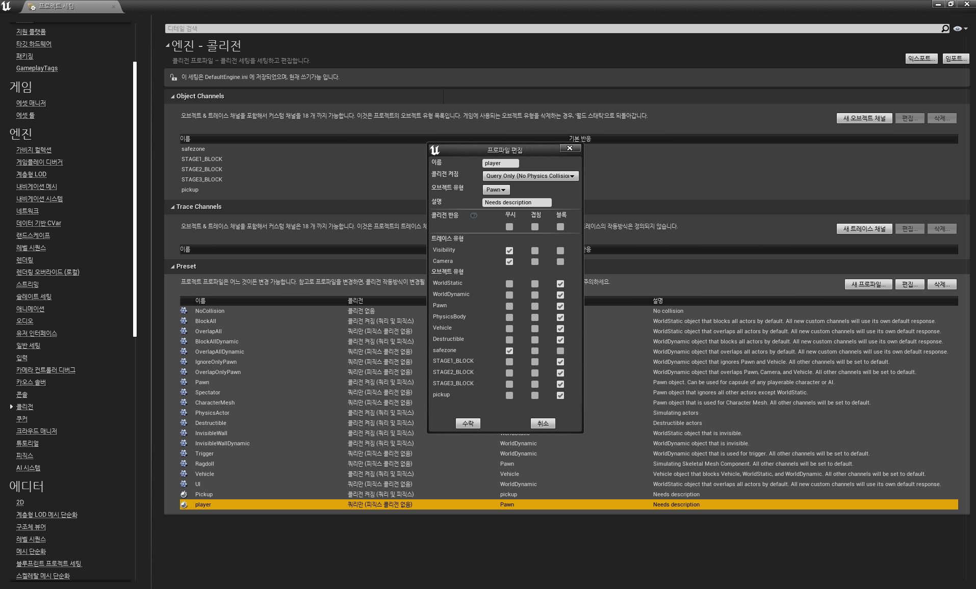 프로젝트 세팅 -> 콜리전 에서 새로운 프리셋을 만들어